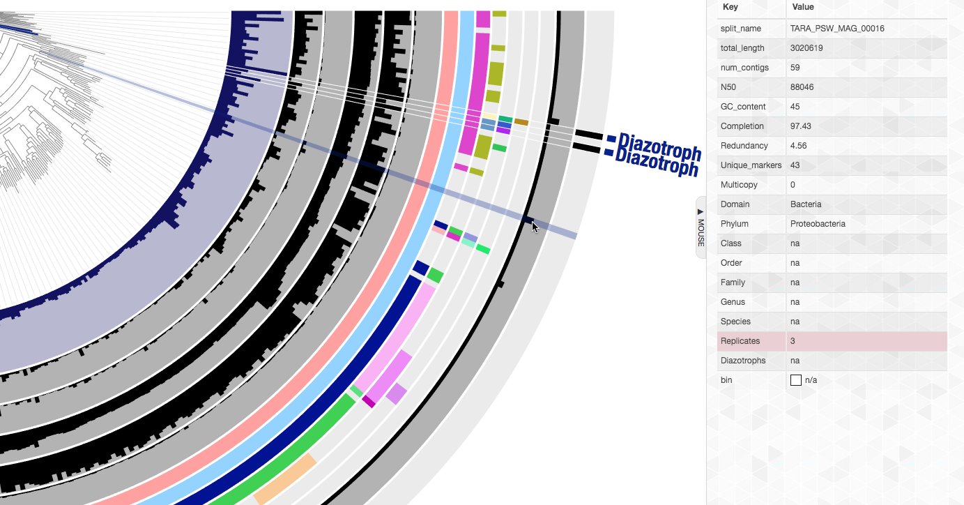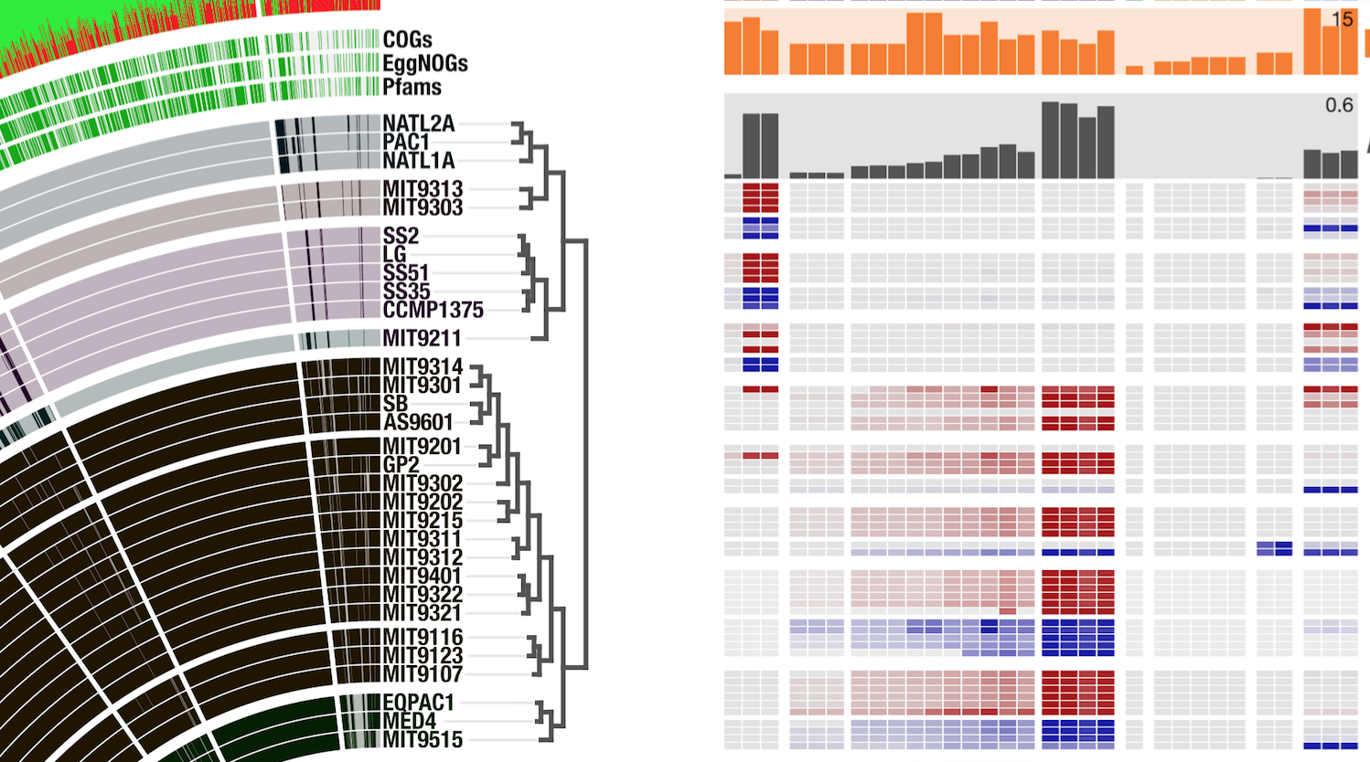 ViewAn analysis of protein clusters recovered from 31 Prochlorococcus genomes in the context of TARA Oceans metagenomes.