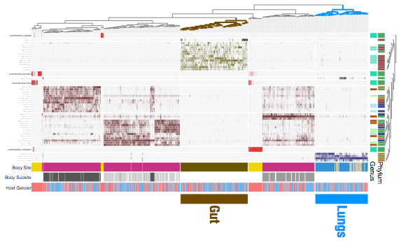 ViewComparing binning results from multiple algorithms on a simple gut metagenome.